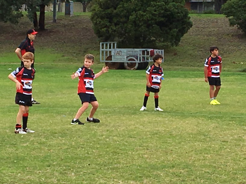 The sun was shining down on us at Box Hill, so after a few quick warm up drills, practicing our ‘stepping’ and tackling, Devonte was chosen as Captain and led out our boys: Devonte, Charlie, Adonai, Lucas, Billy and Darcy.
