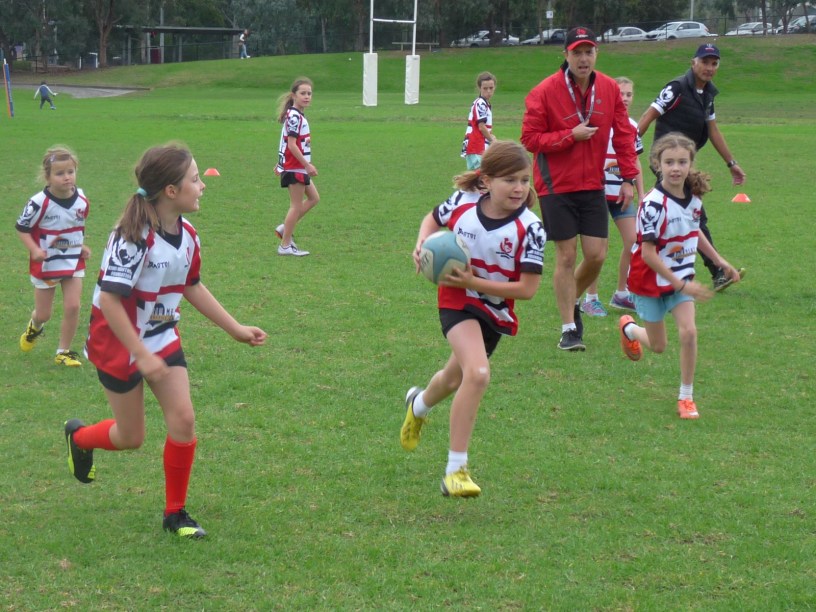 After the Racing game, our two Redbacks teams immediately took to the field for their very first game against each other and again we watched some great passing, catching, running into space and of course try’s. At the end of the game, Claire was awarded this weeks Team Player of the Day medal for her great support work and teamwork. Well done Claire and well done to all of you girls!