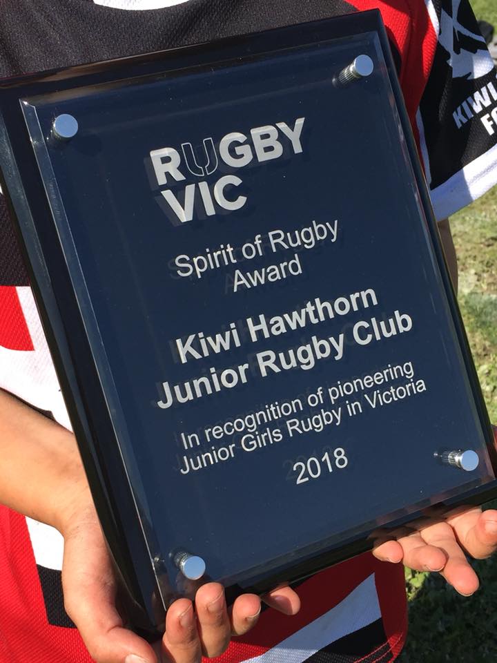 The Rugby Victoria ‘Spirit of Rugby’ award recognises the important part that Kiwi Hawthorn Juniors have played in this growth and was rightly shared with Racing Rugby Club, who have been our partners in this from the start.
