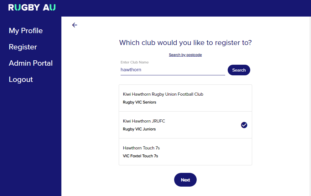 5. Now you’ve set up your Rugby Accounts, you can register to play for Kiwi Hawthorn!